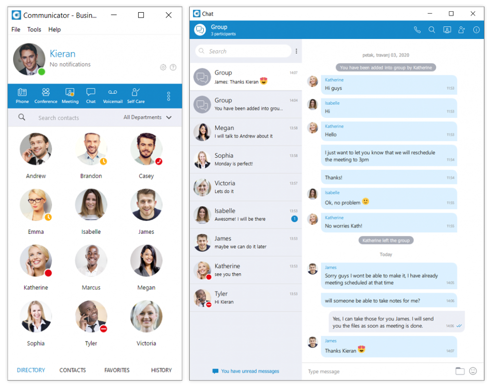 It is capable of replacing or integrating with your desk phone, allowing you to make voice conference, start a group chat, send a fax, make video calls see when contacts are available, transfer files…, all from one intuitive interface.
