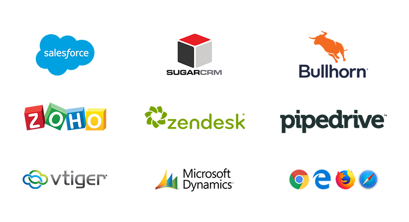 VorTex solution integrates seamlessly with most business-critical apps and services, such as Salesforce, SugarCRM, Zendesk, ZOHO, MS Dynamics, and many more.