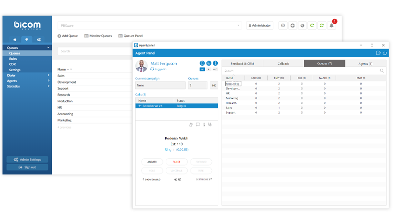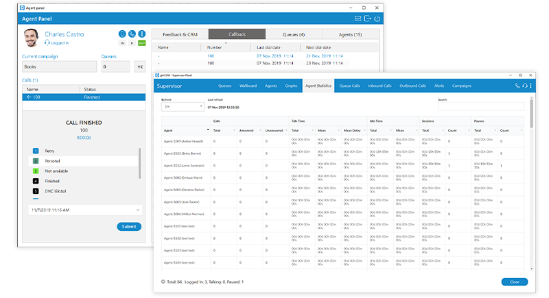 Tie together all of your Contact Center PBX communications in a simple interface via gloCOM Agent and Supervisor editions. CC Supervisor enables real-time monitoring of Agents and Queues, tracking agents’ performance and generating comprehensive statistics reports, while the CC Agent edition provides agents with the right tools to maximize productivity, reduces unnecessary interruptions and makes communication with customers more effective.