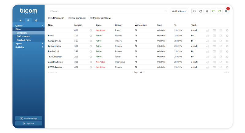 Contact Centers come in different shapes and sizes. Bicom Systems recognizes this. For large professional Contact Centers that manage many different campaigns the quality of tools can save considerable resources second by second, day by day. Often, though, the manner and structure of the workflow and staff positioning is what matters most.
